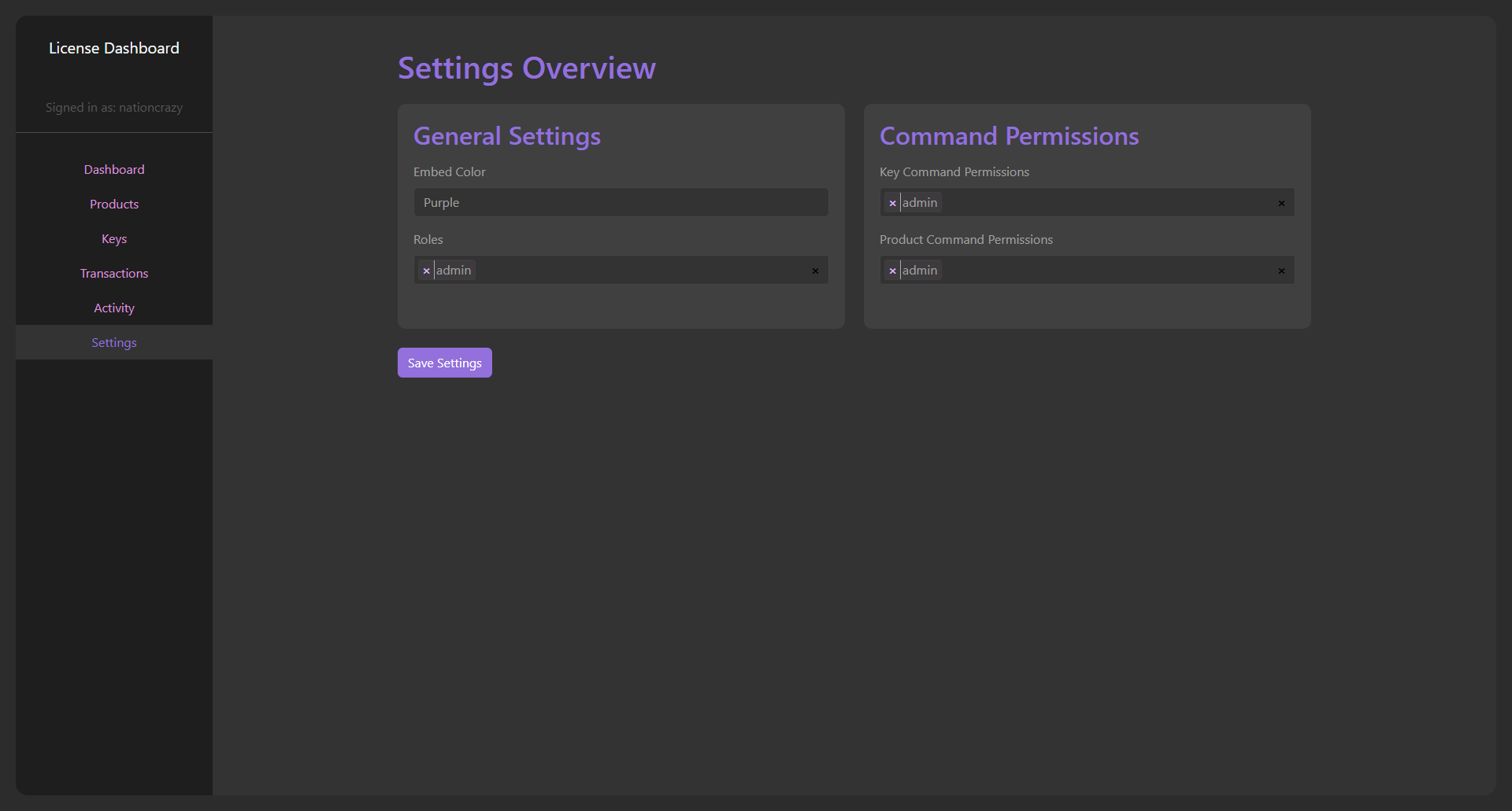 DiscordBot w/ License / API Server, I also have my own discord bot template which I use to help create bots / applications faster.